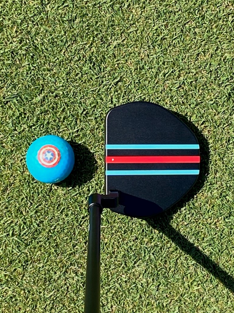 The second feature is Vernier Acuity (hence the “VA” in the putter’s official name). Vernier Acuity refers to the three red and blue alignment stripes behind the face. Sacks Parente was the first company in 2018 to incorporate these triple-stripes into their products. Now several larger companies have followed suit (including Callaway, which Rich Parente co-founded in 1982).