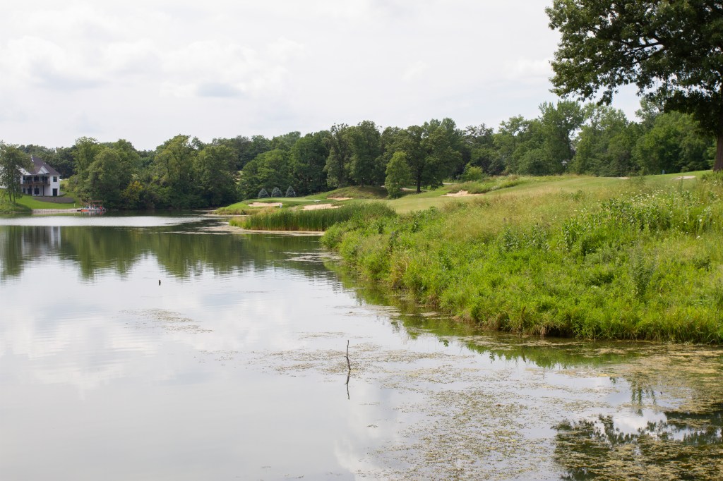A second design flaw is on the 372-yard 15th. From the back tees, there’s only a sliver of fairway to aim at, paralleling the reedy shore of the lake. The problem is a large tree that stands between the members’ tees and the water, which nearly blocks the fairway from view from the tips. If you’ve got a reliable power fade with your driver that you feel comfortable aiming out over the water, you’re fine. Otherwise, chances are you’ll find rough, reeds, or water. Or, like one hapless golf writer, the tree AND the water, with a nearly perfect yet utterly disastrous drive.