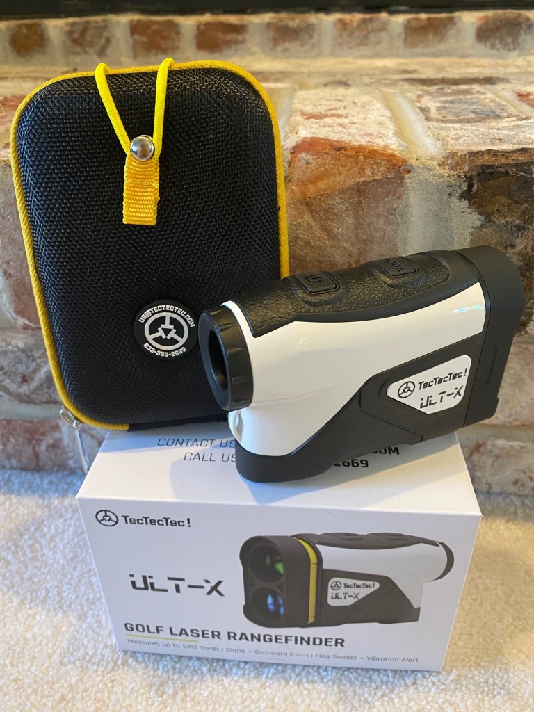 Rangefinders have really grown on me over the years. I used to love the old-school guess, but now I enjoy verifying the yardage with laser precision. If you’re only a slight technophobe, the laser rangefinder is probably your top choice: just aim press a button. One of the more advanced rangefinders on the market is the ULT-X by TecTecTec! ($250). It’s lightweight, uber-precise, and has an elevation mode that is easy to turn on and off. Doing so is accomplished by pulling the lens housing out or pushing it in. When the elevation mode is engaged, a bright yellow band is revealed, so players like my son, who play in tournaments in which measuring elevation is not allowed, will be less likely to forget to turn it off. There is a vibration confirmation when the target is locked in, too (though it’s a bit slower than some higher-priced competitors). I’ve also recently found that another handy use of the ULT-X is keeping an eye on other golfers around the course to maintain social distancing. You can ID friends from 100+ yards away and wave – “Hey, Norm!”
