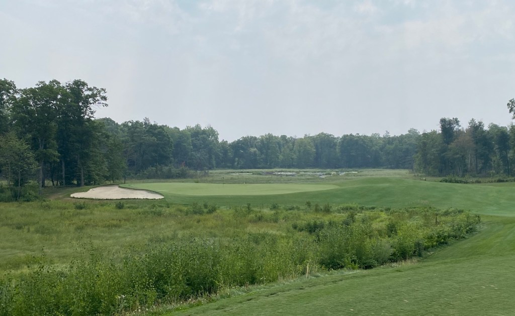 Although the routing of the course makes for some long distances between greens and tees (and reduces walkability), the flow of the routing is smooth and logical. There are three par-5s on the par-37 front nine, and just one on the par-35 back nine. Like the Dutch 18, the main defense is those par 5s, which heave and twist as they skirt the edges of wetlands and woods.