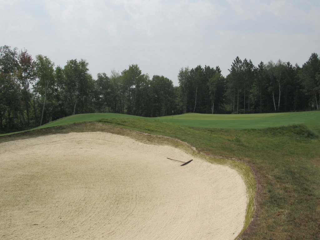One of the hallmarks of the design are the pseudo-stacked-sod bunkers, the sharp, steep lips and revetted faces of which strike fear into the hearts of weekend warrior players. Lehman said he wanted to evoke the sandbelt courses of Australia on the glacial deposits of northern Minnesota, so the bunkers filled with white (Ohio) sand and the firm, fast fairways and greens are central to the homage.