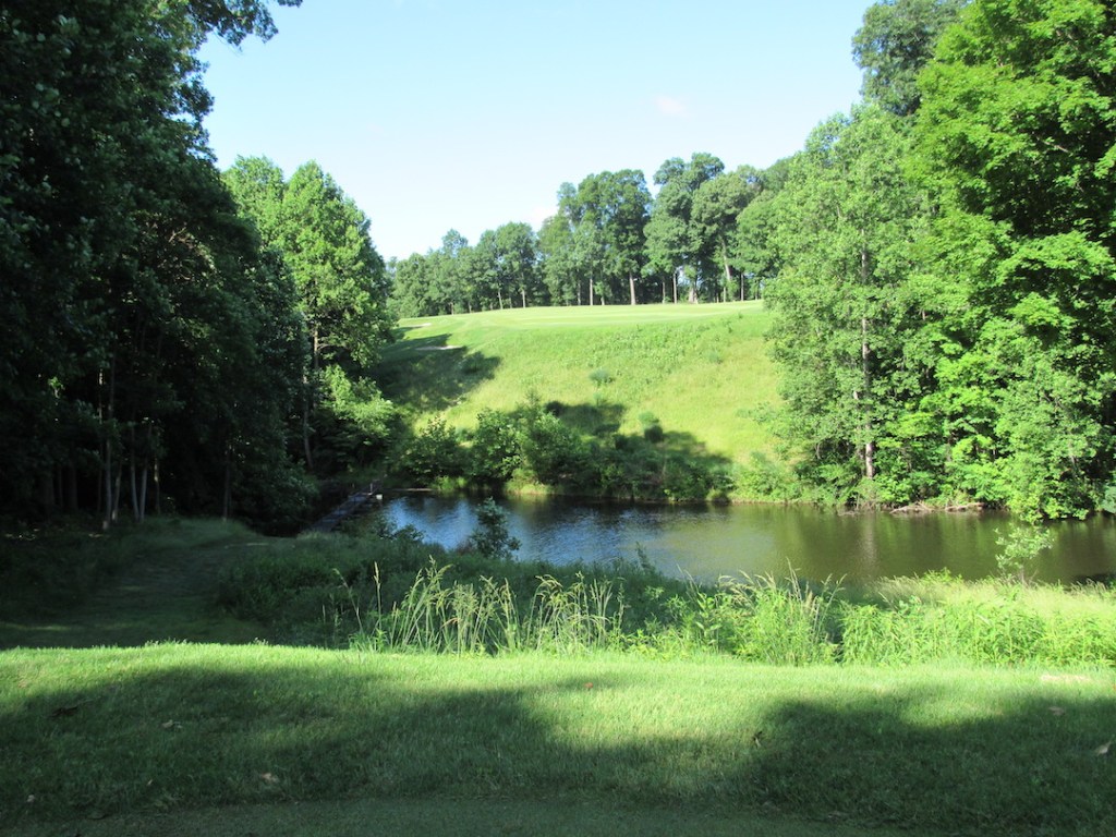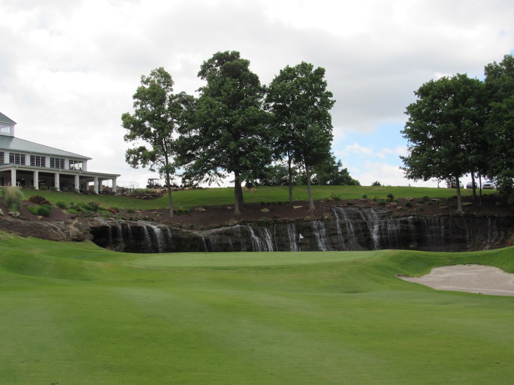 And then there’s the 429-yard, par-4 18th. The GPS lets you know it’s “The Most Dramatic Signature Hole in Indiana.” When you stand on the tee to address the forced, downhill carry over a ravine, you think, “OK, but the carry on the 9th was longer.” (And it was—that was an intimidating tee shot!) But then, if you’re lucky, you get to your ball in the middle of the left-to-right dogleg, and you look uphill toward the green, and you see a 20-foot waterfall ringing the backside of the putting surface. The GPS wasn’t lying!