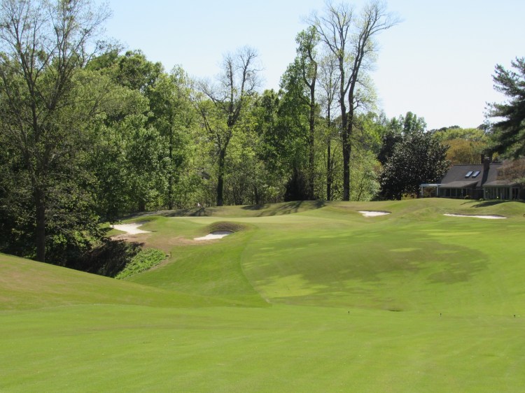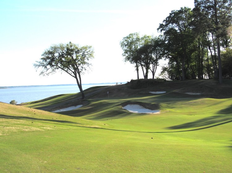 The closing three holes are really the stars of the River Course, though, as they play down to and along the James River. The fairway of the 458-yard 16th has OB both left and right, if you get a little wild. Then the hole turns right and snakes down toward a smallish peninsular green backdropped by the river. If the wind is coming off the water, as it usually is, club choice and angles are everything. The 177-yard, par-3 17th has an elevated tee box and equally elevated green, separated by a 30-foot valley. I don’t know if it was the wind or the weight of history (there are numerous historical markers near the tee box and green), but just about every tee shot I saw (and hit myself) came up a bit short. The unlucky ones rolled down to the bottom of the valley.