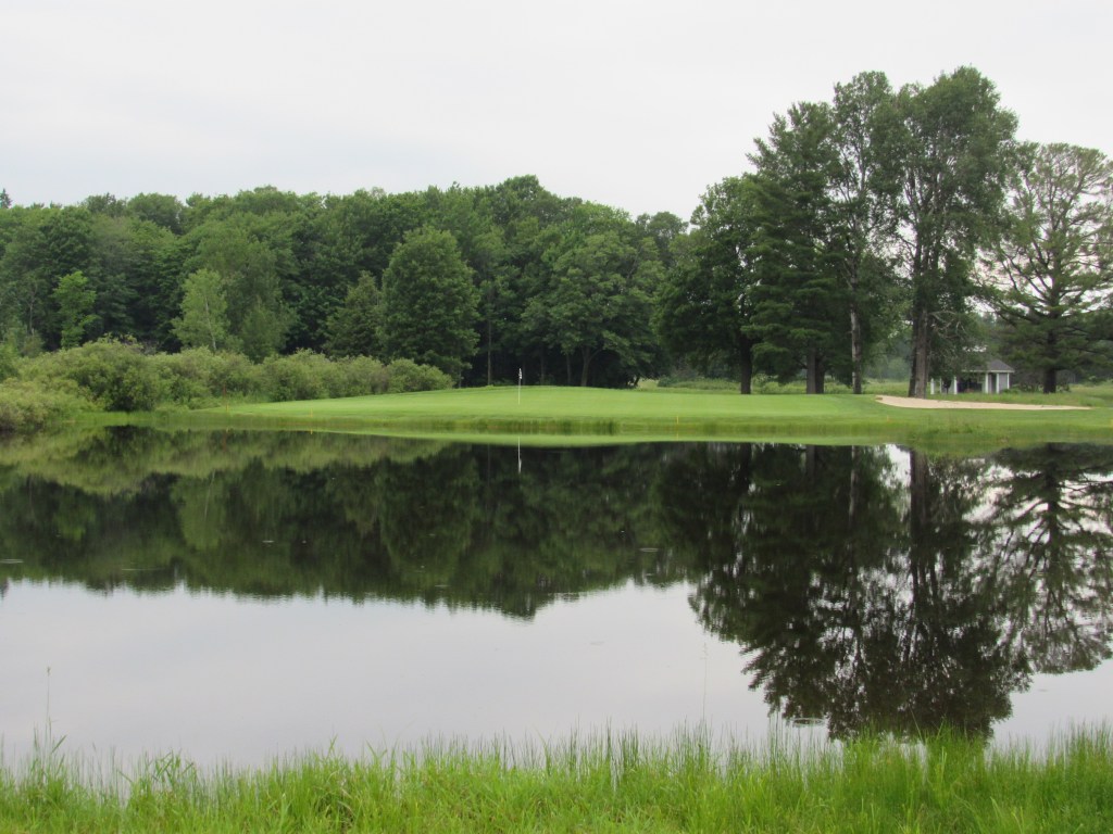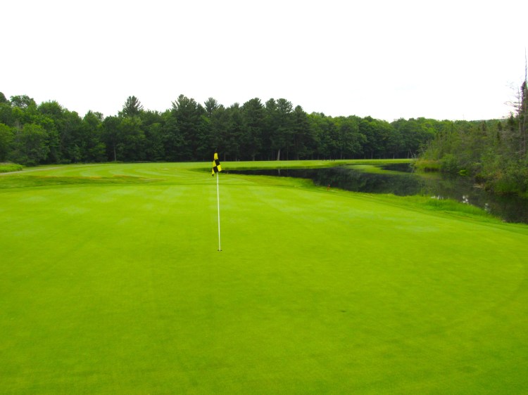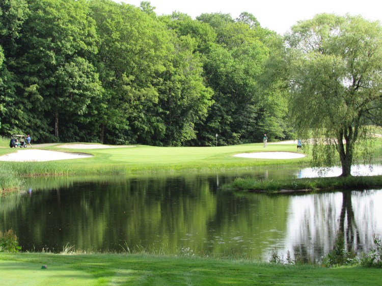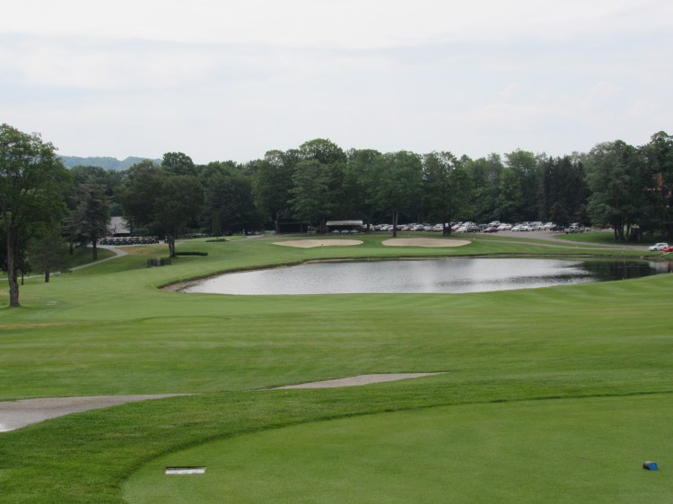 The 482-yard, par-4 18th plays downhill to a large pond that starts 275-230 yards off the tees (depending on the tee box). Although there’s a narrow crescent of fairway off to the left of the water, chances are, your second shot will be a 170-200 yard carry over the water to a kidney-shaped green with two gaping bunkers looming behind it. One of my best shots all season was a 4i-hybrid over said pond to about 10 feet from the front-left pin. (I two-putted for par.)