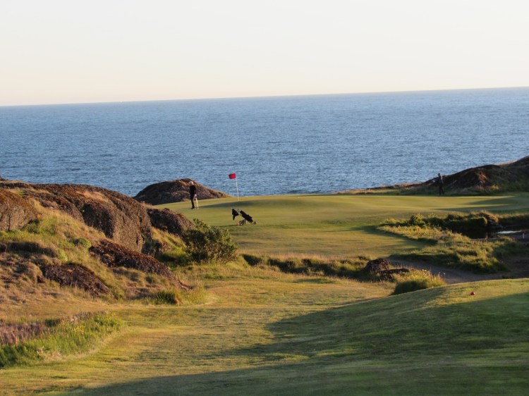 From the back tees, the 2012 Edvinn Roald and Michael Kelly design plays 2,674 yards for 9 holes, 5,348 for 18, and 3,424 for 12, to a par 70. The total yardage, at present, doesn’t seem overwhelming, but between the ocean winds and heavy maritime air, cool temperatures, copious expanses of knee-high fescue, and wildly shaped greens that often drop off into the sea, there is plenty of challenge here. This is all especially true for all first-time international visitors; it’d take a good half-dozen rounds to figure out the optimal angles and landing areas, not to mention the club selections.